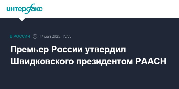 Москва. 17 мая. INTERFAX.RU - Дмитрий Швидковский, повторно избранный в апреле президентом Российской академии архитектуры и строительных наук (РААСН), утвержден в должности. Соответствующее распоряжение подписал премьер-министр РФ Михаил Мишустин, сообщает в субботу сайт правительства.