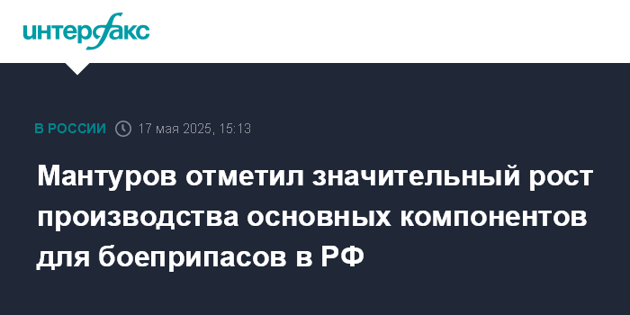 Мантуров отметил значительный рост производства основных компонентов для боеприпасов в РФ