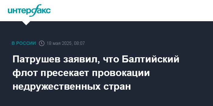Москва. 18 мая. INTERFAX.RU - Помощник президента РФ, председатель Морской коллегии Николай Патрушев заявил, что Балтийский флот обеспечивает безопасность судоходства, пресекает провокации военно-морских сил недружественных стран.