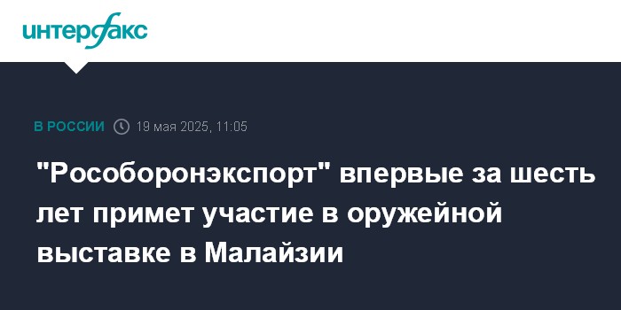 Москва. 19 мая. INTERFAX.RU - "Рособоронэкспорт" впервые за шесть лет организует объединенную российскую экспозицию на Международной выставке авиационно-космической и военно-морской техники LIMA 2025 в Малайзии, сообщила компания.