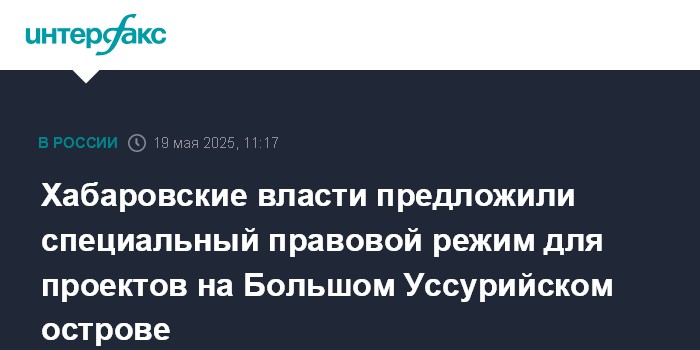 Москва. 19 мая. INTERFAX.RU - Губернатор Хабаровского края Дмитрий Демешин предложил распространить специальный правовой режим на проекты, которые будут реализованы на Большом Уссурийском острове.