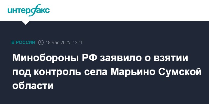 Москва. 19 мая. INTERFAX.RU - Российские военные взяли под контроль село Марьино Сумской области, нанесли удары по четырем бригадам вооруженных сил Украины (ВСУ), заявили в Минобороны РФ в понедельник.