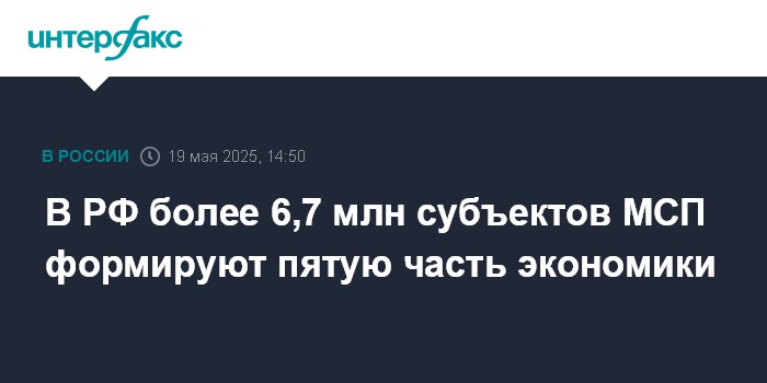 В РФ более 6,7 млн субъектов МСП формируют пятую часть экономики
