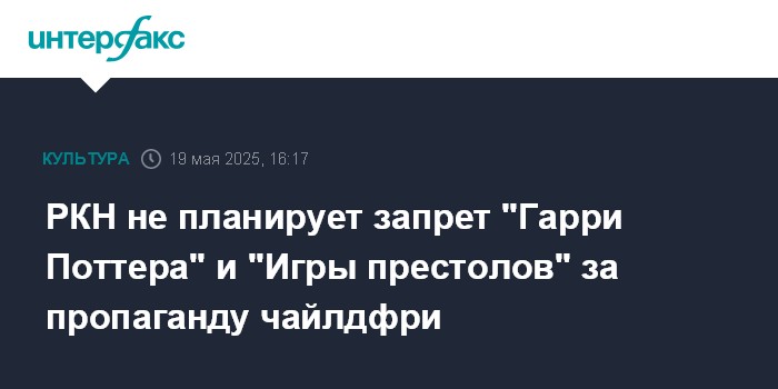 РКН не планирует запрет "Гарри Поттера" и "Игры престолов" за пропаганду чайлдфри