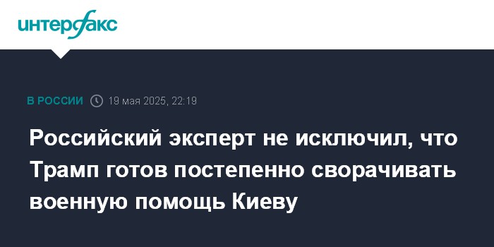 Москва. 19 мая. INTERFAX.RU - Президент США Дональд Трамп, возможно, близко подошел к принятию решения о постепенном снижении военной помощи и предоставления разведывательных данных США Украине, считает главный научный сотрудник Института США и Канады РАН Владимир Васильев.