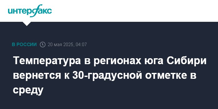 Температура в регионах юга Сибири вернется к 30-градусной отметке в среду