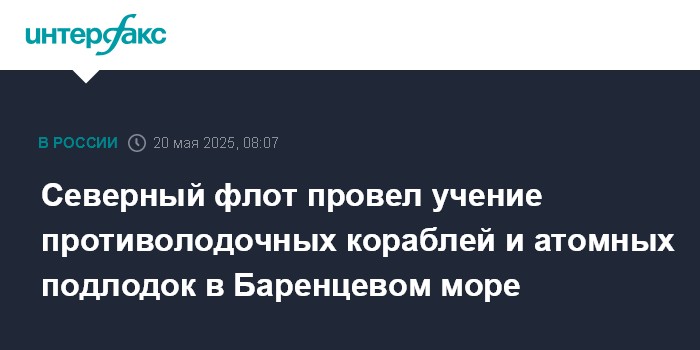 Москва. 20 мая. INTERFAX.RU - Атомные подводные лодки Северного флота и большие противолодочные корабли "Североморск" и "Вице-адмирал Кулаков" провели учение с практическими стрельбами в Баренцевом море, сообщила пресс-служба флота во вторник.