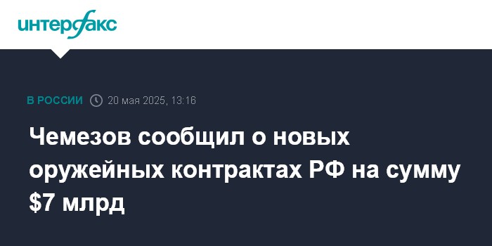Москва. 20 мая. INTERFAX.RU - "Рособоронэкспорт" в текущем году заключил с иностранными партнерами новые контракты на сумму $7 млрд, портфель заказов превысил показатель в $60 млрд, сообщил глава "Ростеха" Сергей Чемезов.
