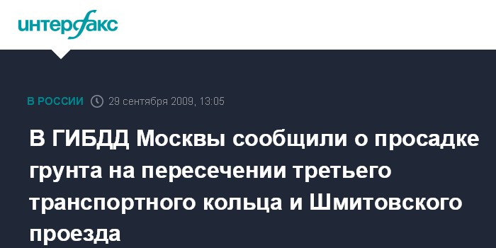 Москва. 29 сентября. INTERFAX.RU - Небольшой провал грунта обнаружили в ночь на вторник сотрудники столичной ГИБДД в Шмитовском проезде в районе пересечения с третьим транспортным кольцом.