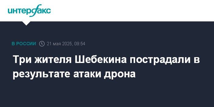 Москва. 21 мая. INTERFAX.RU - Губернатор Белгородской области Вячеслав Гладков сообщил о трех пострадавших в результате атаки украинского дрона в Шебекине.