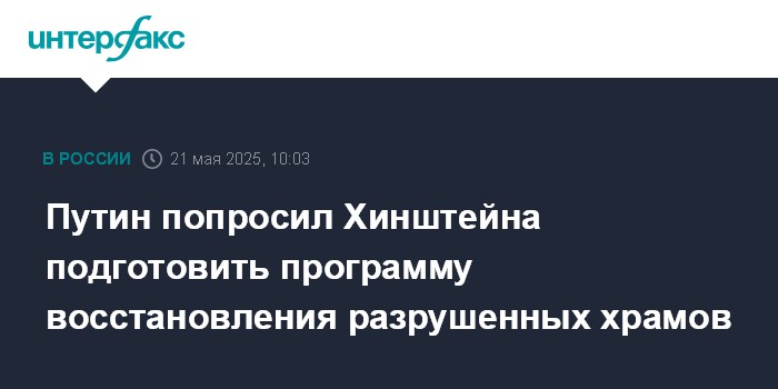 Путин попросил Хинштейна подготовить программу восстановления разрушенных храмов