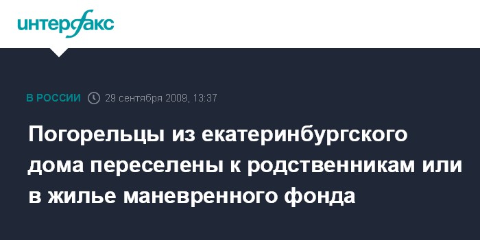 Москва. 29 сентября. INTERFAX.RU - Три квартиры и две комнаты выделила администрация Екатеринбурга жильцам загоревшегося в ночь на вторник дома в центре города.