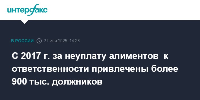 С 2017 г. за неуплату алиментов к ответственности привлечены более 900 тыс. должников