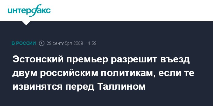 Эстонский премьер разрешит въезд двум российским политикам, если те извинятся перед Таллином