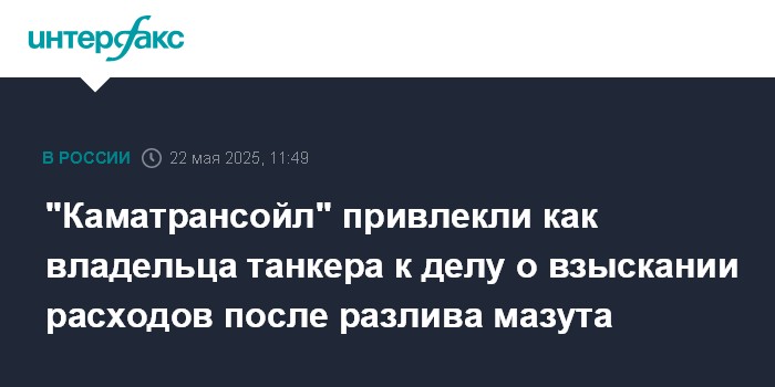 Москва. 22 мая. INTERFAX.RU - Арбитражный суд Краснодарского края на заседании в четверг привлек ООО "Каматрансойл" в качестве соответчика к делу о взыскании с владельцев танкеров "Волгонефть 239" и "Волгонефть 212", потерпевших крушение в Керченском проливе в декабре 2024 года, расходов за работы по ликвидации разлива нефтепродуктов по иску властей Анапы, передает корреспондент "Интерфакса" с предварительного судебного заседания.