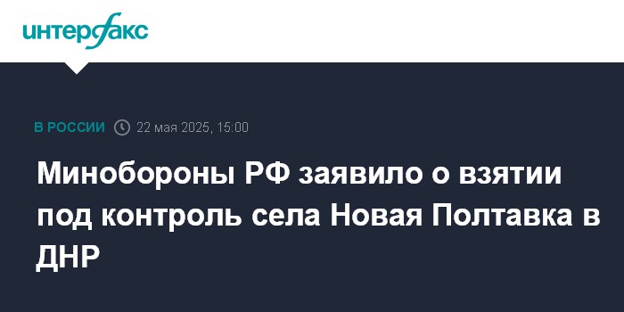 Москва. 22 мая. INTERFAX.RU - В министерстве обороны РФ сообщили, что под контроль российских войск перешло село Новая Полтавка в ДНР.