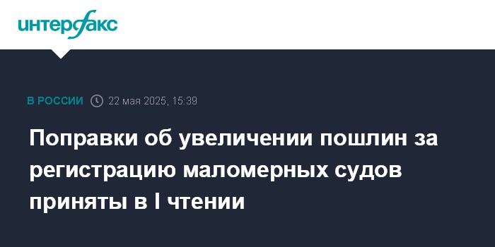 Москва. 22 мая. INTERFAX.RU - Госдума приняла в первом чтении законопроект об увеличении пошлин за регистрацию спортивных парусных, прогулочных и маломерных судов с одновременной отменой пошлины за выдачу судового билета.