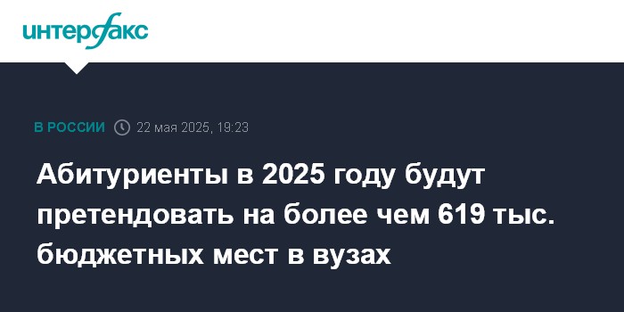 Москва. 22 мая. INTERFAX.RU - Более 619 тыс. бюджетных мест установлено в 2025 году для приема в российские вузы, возможность поступить на бюджетное место сегодня имеет большинство одиннадцатиклассников, сообщил глава Минобрнауки РФ Валерий Фальков.
