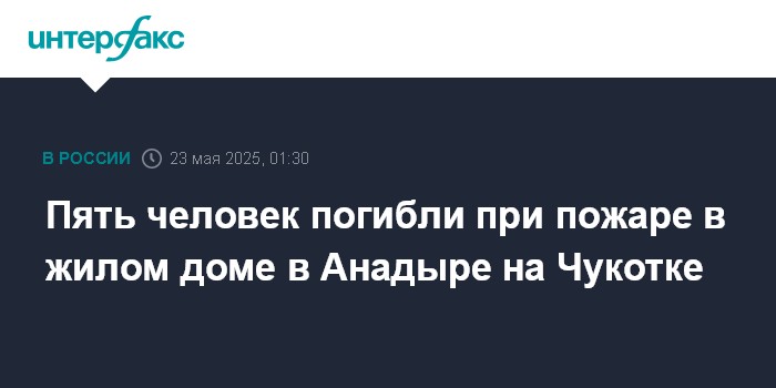 Москва. 23 мая. INTERFAX.RU - Пять погибших обнаружены на месте пожара в жилом доме в Анадыре (Чукотка), четверо людей госпитализированы, сообщает МЧС РФ.