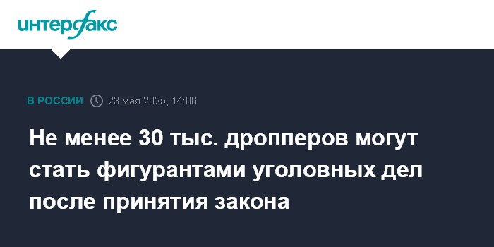 Не менее 30 тыс. дропперов могут стать фигурантами уголовных дел после принятия закона