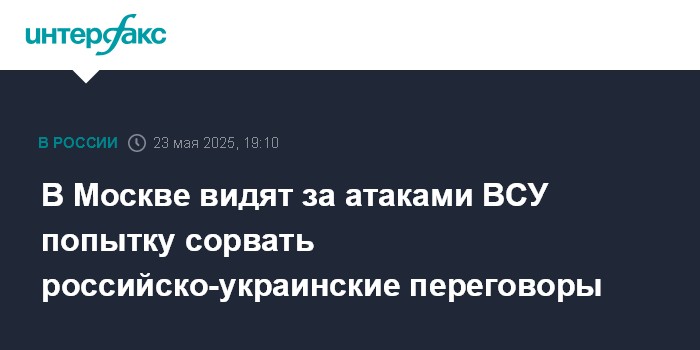 Москва. 23 мая. INTERFAX.RU - Атаки украинской стороны по территории России нацелены на срыв прямых российских-украинских переговоров, заявили в МИД России.