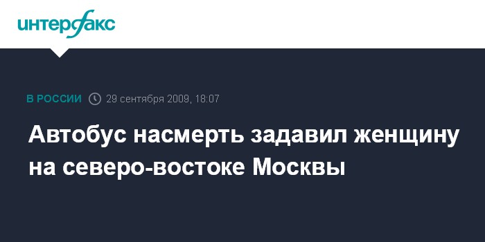 Москва. 29 сентября. INTERFAX.RU - Рейсовый автобус на северо-востоке Москвы сбил женщину, которая от полученных ранений скончалась на месте, сообщил "Интерфаксу" источник в правоохранительных органах столицы во вторник.