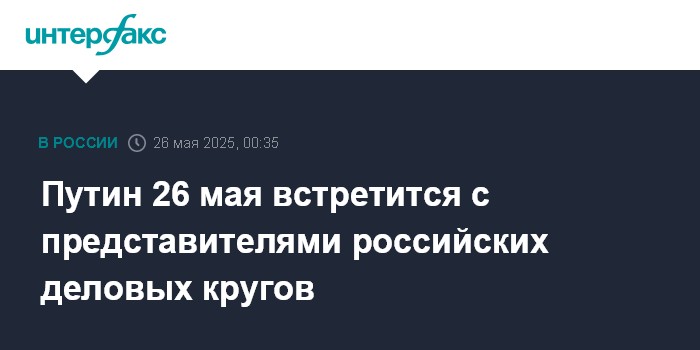 Москва. 26 мая. INTERFAX.RU - Президент РФ Владимир Путин 26 мая, в День российского предпринимательства, проведет встречу с представителями российских деловых кругов, сообщила пресс-служба Кремля.