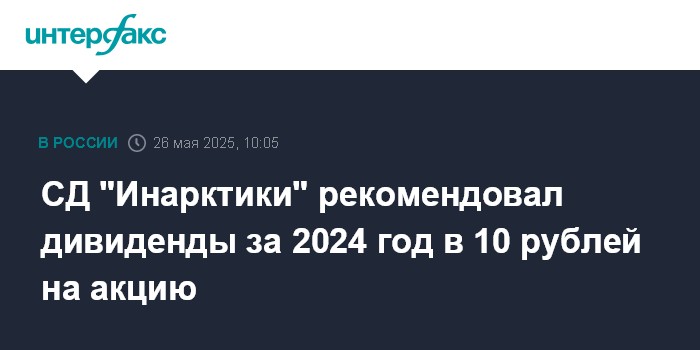 СД "Инарктики" рекомендовал дивиденды за 2024 год в 10 рублей на акцию