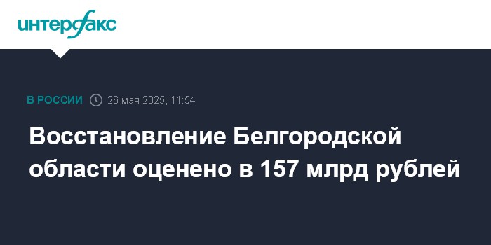 Восстановление Белгородской области оценено в 157 млрд рублей