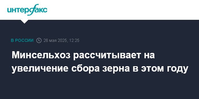 Москва. 26 мая. INTERFAX.RU - Минсельхоз рассчитывает на увеличение сбора зерна в этом году, заявил журналистам в кулуарах Кавказского инвестиционного форума замминистра сельского хозяйства Андрей Разин.