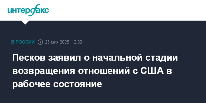 Москва. 26 мая. INTERFAX.RU - Россия и США находятся в самом начале возвращения двусторонних отношений в рабочее состояние, заявили в Кремле.