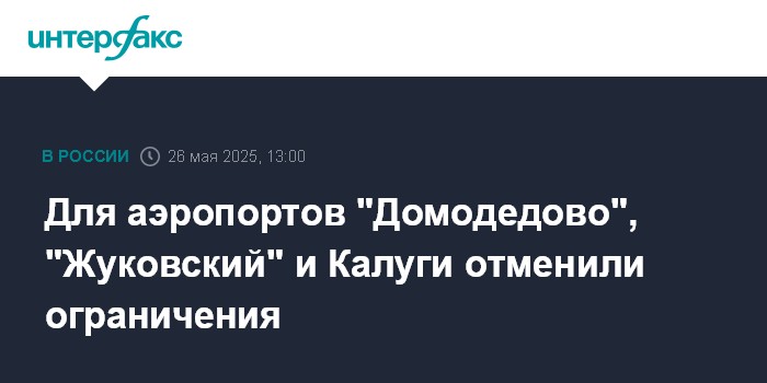 Москва. 26 мая. INTERFAX.RU - Ограничения, вводившиеся ранее для аэропортов "Домодедово", "Жуковский" и "Грабцево" (Калуга), отменены, сообщила Росавиация.