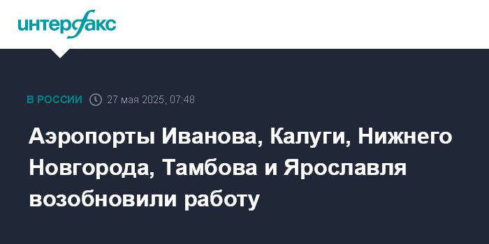 Аэропорты Иванова, Калуги, Нижнего Новгорода, Тамбова и Ярославля возобновили работу