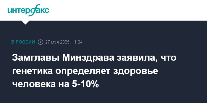 Замглавы Минздрава заявила, что генетика определяет здоровье человека на 5-10%