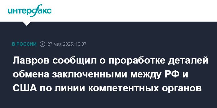 Москва. 27 мая. INTERFAX.RU - Детали обмена заключенными между Россией и США обсуждаются в настоящее время по линии компетентных органов, заявил глава МИД РФ Сергей Лавров.