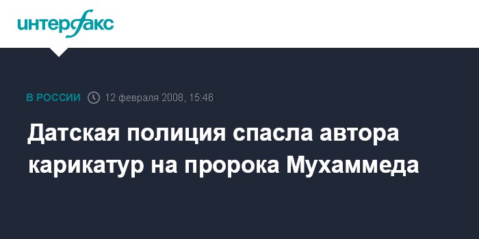 Москва. 12 Февраля. INTERFAX.RU - Власти Дании задержали группу из пяти человек по подозрению в подготовке покушения на художника, нарисовавшего скандальные карикатуры для газеты Jyllands-Posten в 2005 году, передает телерадиокомпания BBC. Тогда из-за массовых протестов, связанных с перепечаткой рисунков исламского пророка Мухаммеда, погибли десятки людей в мусульманских странах.