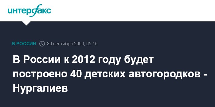 В России к 2012 году будет построено 40 детских автогородков - Нургалиев