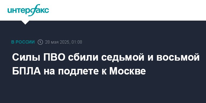 Москва. 28 мая. INTERFAX.RU - Еще два украинских дрона, летевших на Москву, уничтожены силами ПВО, сообщил в среду мэр столицы Сергей Собянин.