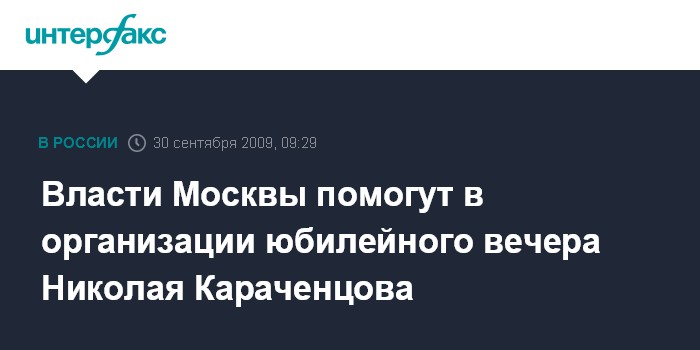 Москва. 30 сентября. INTERFAX.RU – Мэр Москвы Юрий Лужков подписал распоряжение, согласно которому из бюджета города будут выделены средства на софинансирование проведения юбилейного вечера Николая Караченцова.