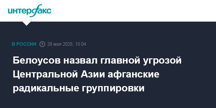 Москва. 28 мая. INTERFAX.RU - Многочисленные радикальные группировки в Афганистане остаются основной угрозой в Центральноазиатском регионе, негативно сказывается на обстановке здесь и нестабильность на Ближнем Востоке, заявил на заседании Совета министров обороны ОДКБ глава Минобороны России Андрей Белоусов.