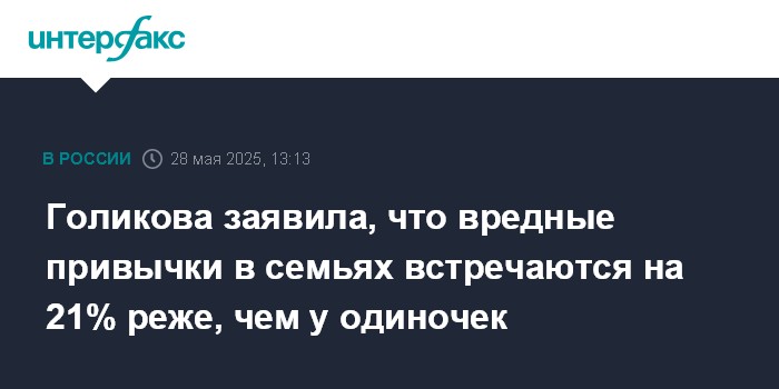 Голикова заявила, что вредные привычки в семьях встречаются на 21% реже, чем у одиночек