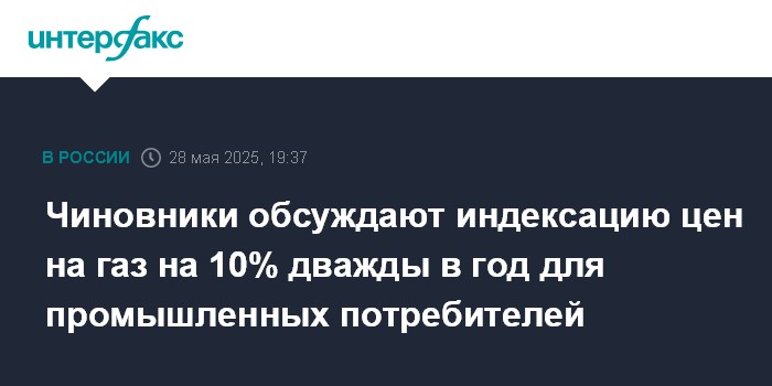 Чиновники обсуждают индексацию цен на газ на 10% дважды в год для промышленных потребителей