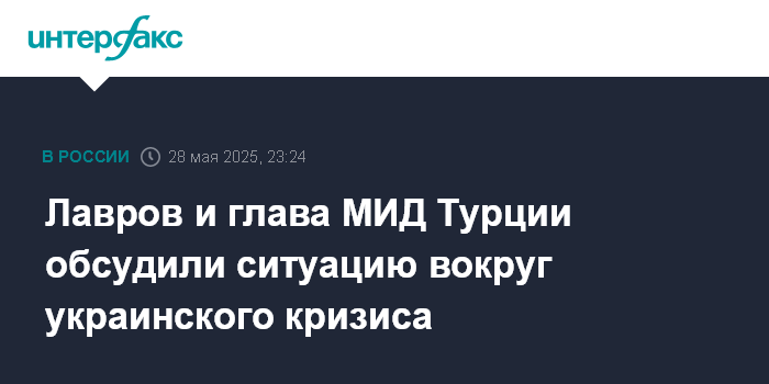 Москва. 28 мая. INTERFAX.RU - Главы МИД РФ и Турции Сергей Лавров и Хакан Фидан по телефону обсудили украинский кризис и пути его политического урегулирования, сообщило в среду российское внешнеполитическое ведомство.