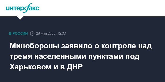 Минобороны заявило о контроле над тремя населенными пунктами под Харьковом и в ДНР
