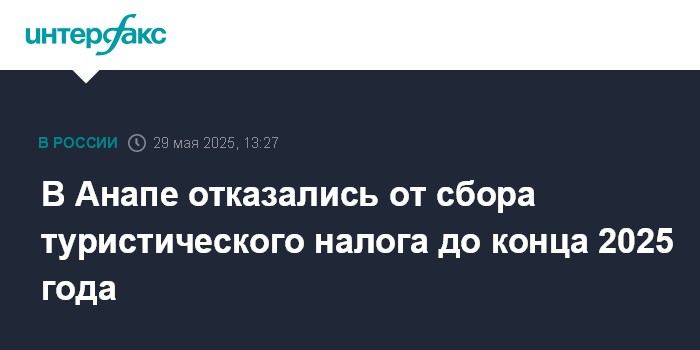 Москва. 29 мая. INTERFAX.RU - Совет муниципального образования город-курорт Анапа решил приостановить сбор туристического налога на территории города в текущем году, сообщает пресс-служба мэрии.