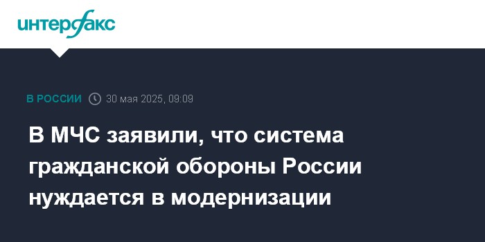Москва. 30 мая. INTERFAX.RU - Система гражданской обороны России нуждается в модернизации для максимальной защиты населения от внешних угроз, заявил глава МЧС РФ Александр Куренков.