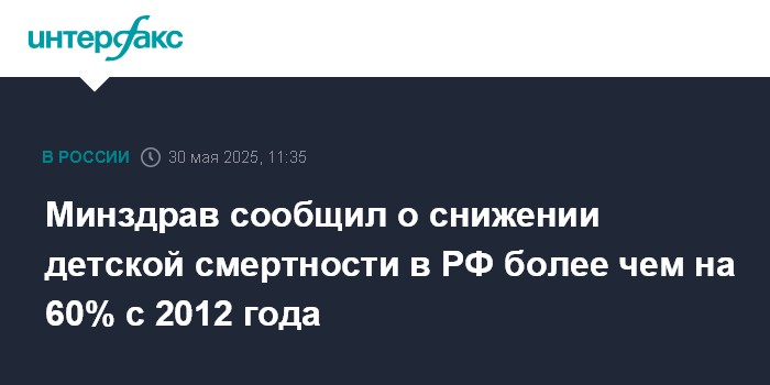 Младенческая смертность на 1 тыс. родившихся живыми сократилась на 57%. В 2012 году этот показатель составлял 8,6 промилле (смертей на 1 тыс. человек - ИФ); в январе-апреле 2025 г. - 3,7 промилле.