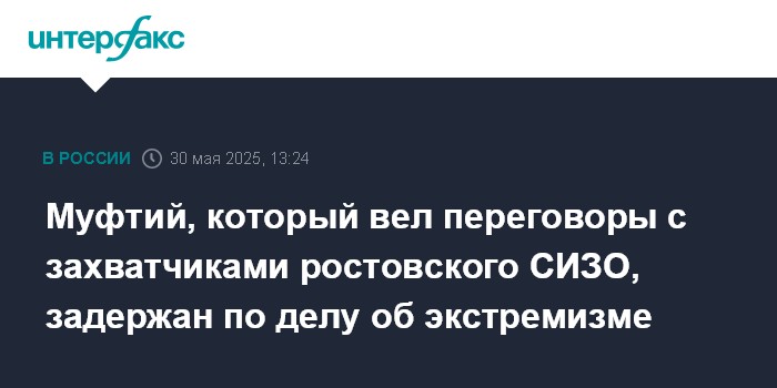 В свою очередь в правоохранительных органах региона "Интерфаксу" уточнили, что задержанный - муфтий Ахмед Абусупьянов, который в июне прошлого года вел переговоры с захватчиками заложников в СИЗО-1 в центре Ростова-на-Дону.