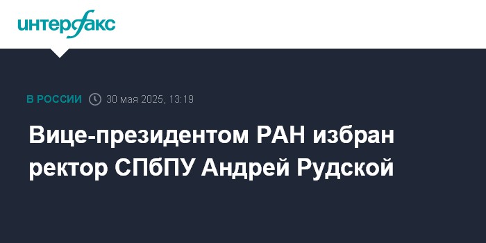Москва. 30 мая. INTERFAX.RU - Ректор Санкт-Петербургского политехнического университета Петра Великого (СПбПУ), академик РАН Андрей Рудской избран вице-президентом Российской академии наук, сообщил председатель счетной комиссии академик Игорь Решетов.