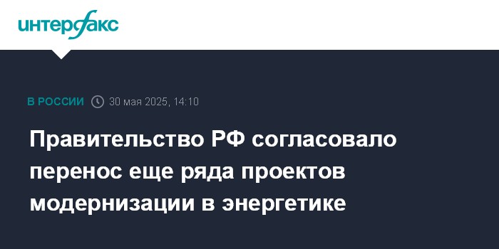 Правительство РФ согласовало перенос еще ряда проектов модернизации в энергетике